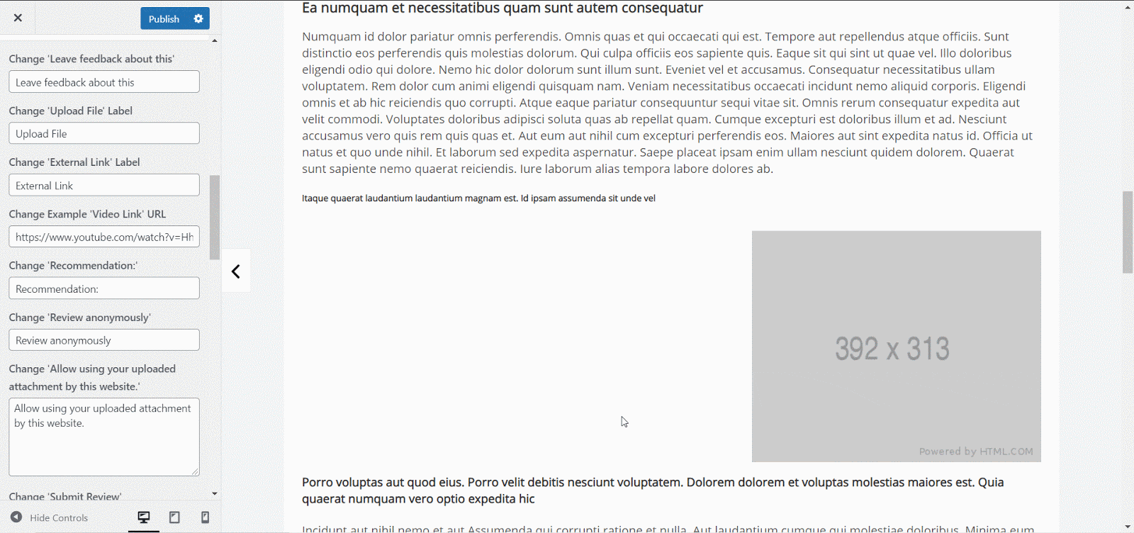 ReviewX offers you the flexibility to change different labels for specific sections in WordPress customizer. You can have a full customization option starting from changing the label text to modifying the design.